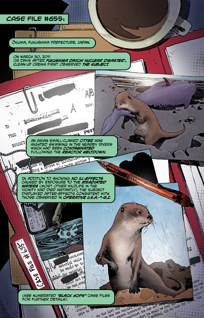 BLACK HOPS tells the tale of U.S.A-*-G.I. , the dauntless, highly trained special missions rabbit who has worked with the United States military to take out high-profile targets for over half a century. Found in the atomic aftermath of World War II, the leporid that would eventually be U.S.A.-*-G.I. began to display abilities that superseded those typified for his species
